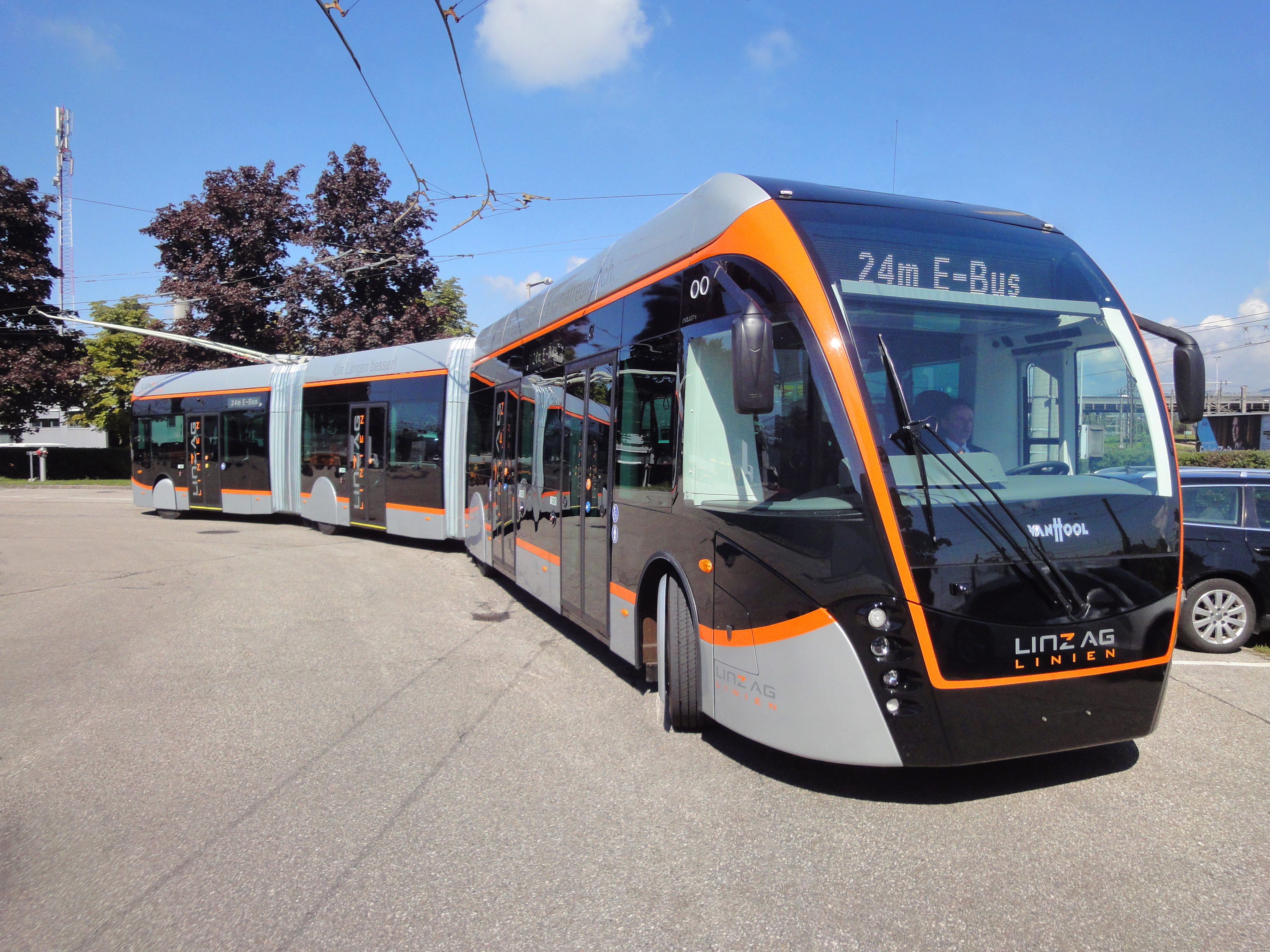 Der IMC Bus für Linz ist ein voll elektrisches Großraumfahrzeug für den innerstädtischen Personentransport. Mit 24 Metern Länge bietet der Trolleybus eine preiswerte Alternative zu einer Straßenbahn.