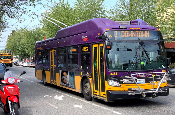 KCM und SFMTA verfügen über die beiden größten Elektro-Trolleybusflotten in den Vereinigten Staaten und bieten umweltfreundliche Transportalternativen. Seattle hat 70 Meilen zweispurige Oberleitungen und steile Hügel (19 %). San Francisco betreibt 140 Meilen zweispurige Oberleitungen mit extrem steilen Steigungen von bis zu 23 %.