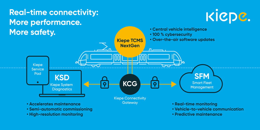 The new KIEPE Train Control Management System (TCMS NextGen) offers fully digital connectivity and cyber security. This enables public transit companies to increase performance and availability enormously and increase passenger satisfaction.